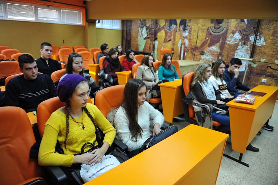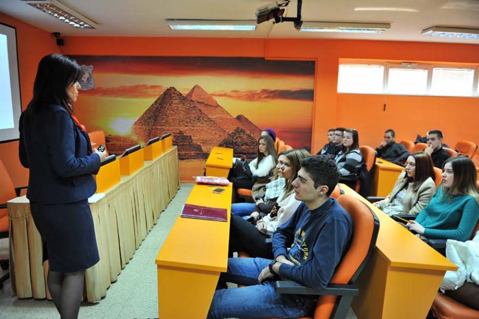 Students had the opportunity to listen to the lecture from the Dean of the Faculty of Tourism Sasko Gramatnikovski Assoc. Dr., and the Dean of the Faculty of International Marketing Management Assoc. Dr. Daliborka Blazeska. The training was attended by graduates from high school "Georgi Dimitrov" - Skopje.