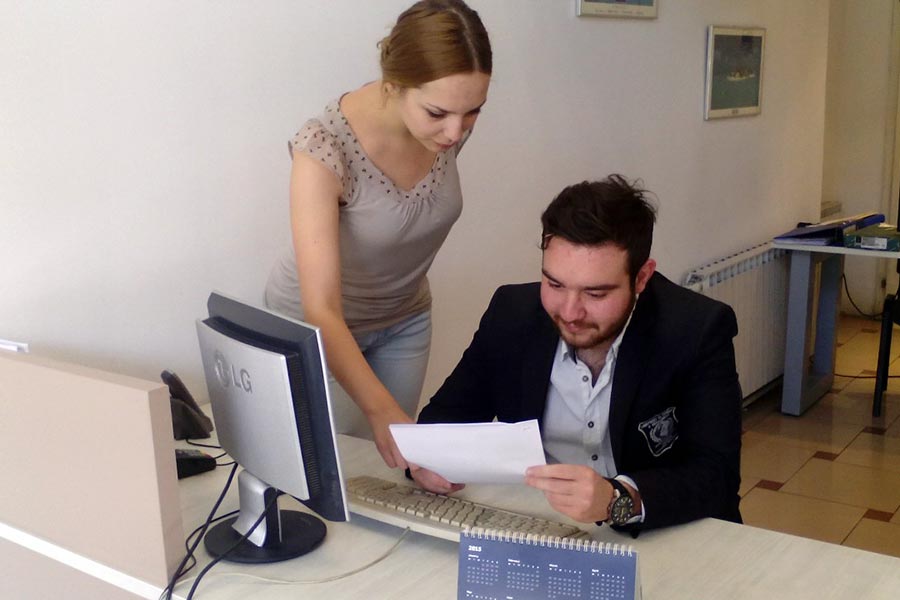 In the travel agency "Orfej", his practice occupies Filip Filipovski, full-time student in the second year of the Faculty of International Marketing Management. He was mentored by Elena Veljanoska working in the travel agency.