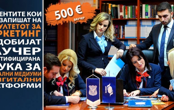 The Faculty of Marketing at UTMS within the enrollment deadlines in the academic year 2017-2018, for newly enrolled students in the first year awards a voucher of 500 EU for certified training for...