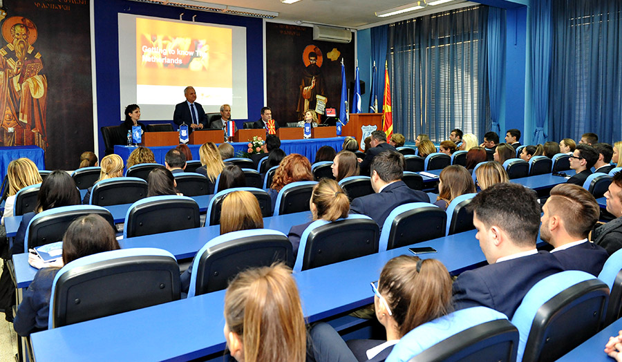 Во рамките на програмата за гости-предавачи на Универзитетот за туризам и манаџмент во Скопје на 01.11.2017 година, експертско предавање одржа амбасадорот на Кралството Холандија во Република Македонија, Неговата Екселенција г-дин Ваутер Пломп, кој пред студентите, вработените и учениците од СУГС „Здравко Цветковски“ и СУГС „Никола Карев“ говореше на тема: „Да ја запознаеме Холандија“. Во своето предавање Амбасадорот, посебен акцент даде на туризмот како една од најзначајните индустрии во земјата која има големо економско влијание. Во тој контекст особено беше потенцирано економското влијание на MICE-туризмот на кој Холандија посветува големо внимание преку NBTC (The Netherland Board of Tourism and Conventions) како и фокусот на туристичката индустрија кон одржливоста преку инвестиции во природата и обновливите извори на енергија. Во текот на предавањето дел од студентите и вработените поставија прашања за актуелните трендови во туристичката индустрија.