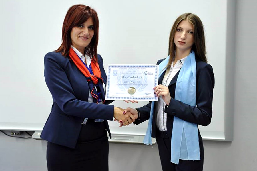 Во рамките на планираните активности на Центарот за кариера на Универзитетот за туризам и менаџмент - Скопје, кои се однесуваат на градење извонредни компетенции на студентите, денес 05.10.2017 година, проф. д-р Сашко Граматниковски одржа предавање на тема: Вештини на ефикасен и ефективен презентер. По теоретскиот дел, проф. д-р Александра Стоилковска, реализираше работилница во која студентите изработуваа презентација за воведување на иновација во организацијата и истата ја презентираа. Целта на вежбата беше да се идентификува нивото на техничко знаење за креирање на презентација и нивото на презентерски вештини кај секој студент. Како пример за квалитетно изработена презентација и високо ниво на презентерски вештини своја презентација имаше една од најдобрите студентки на УТМС, Анушка Ратковиќ. На обуката присуствуваа студентите од прва година од Факултетот за менаџмент на човечки ресурси и Факултетот за меѓународен маркетинг менаџмент. Обуката имаше за цел студентите да научат и да се стекнат со вештини за креирање на квалитетна презентација како и примена на стандарди за ефикасно и ефективно презентирање. По завршување на обуката, Кариерниот центар на УТМС, на студентите им додели сертификати за учество.